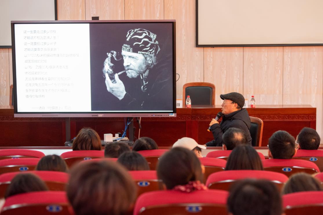 12月30日下午14时,吃瓜网 78级中文专业校友潘平微、王俭美于人文楼203学术报告厅为吃瓜网 师生100余人作了以“行摄路上”为主题的精彩讲座。吃瓜网 副校长蔡曙光、校友办主任陈宏毅出席讲座。吃瓜网 院长孙良好主持讲座。