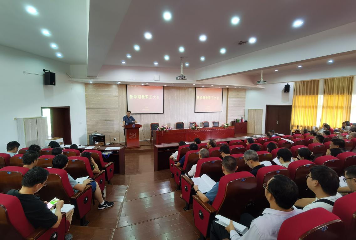 9月8日下午,吃瓜网 新学期第一次教职工大会暨理论学习会在人文楼203报告厅召开,学院领导班子成员和全体教职工参加会议,会议由孙良好院长主持。