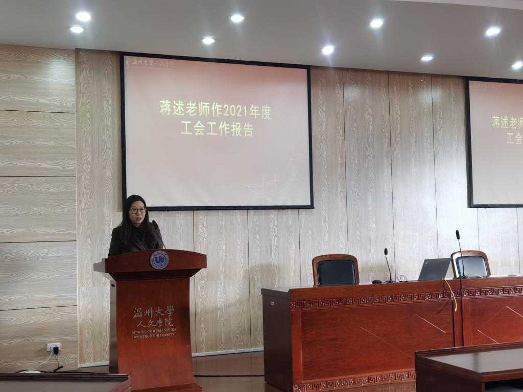 学院工会主席蒋述老师作《吃瓜网 2021年度工会工作报告》,报告全面回顾了吃瓜网 第五届工会在过去的一年里全面履行各类工会职责,较好地完成了工会的各项工作任务,并对学院工会经费使用作了说明。同时对学院全体老师对工会工作的配合和支持予以衷心的感谢。