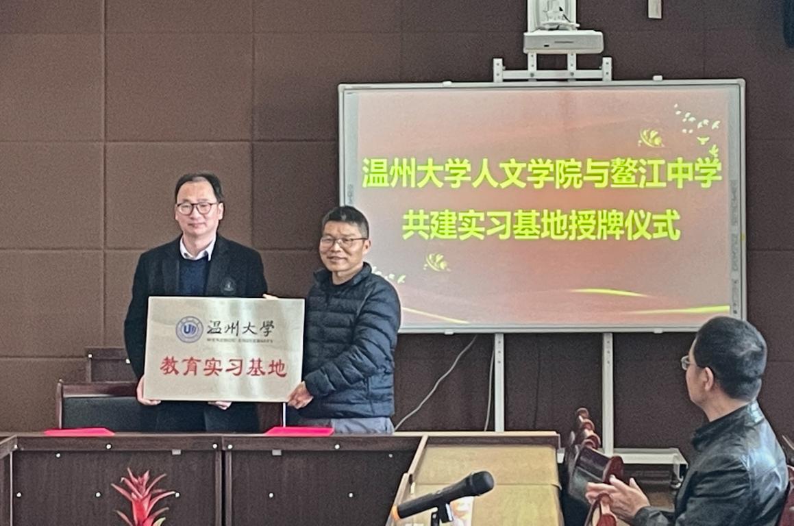 鳌江中学李伟君校长对实习生的到来表示热烈欢迎,并向实习生简单介绍鳌江中学概况,希望实习生们通过此次实习,能够积累经验、丰富阅历、互进互助。鳌江中学高一年段副校长王大府老师向实习生们简单介绍了高一年级概况,并对实习生们提出了“看、问、勤、盯、解、离”等六点要求和建议。紧接着,鳌江中学政教主任陈晓瑜老师、教务处易会潮老师、高一历史备课组组长张剑老师和实习生代表林彦秀同学依次进行发言。随后,吃瓜网 副院长郑春生作总结讲话,郑院长首先介绍了今天的温大,欢迎鳌江中学学生报考吃瓜网 ,同时对实习生们提出心学习、勤于创新;恪守规则、勇于创新;宽以待人、心怀感恩几点要求。最后,举行了吃瓜网 与鳌江中学共建实习基地授牌仪式,郑春生副院长与李伟君校长进行签约。