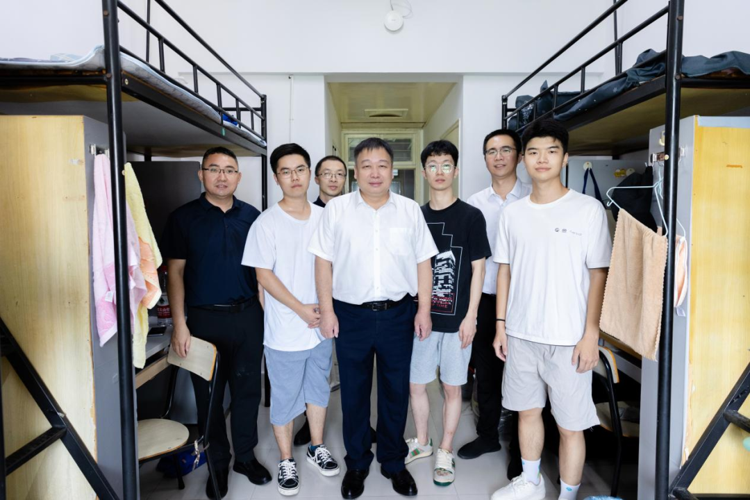 走访过程中,院长孙良好同样对每位新生表达了亲切的问候,关切地询问了学生们的来校感受和适应情况。在查看新生的住宿条件和了解学生们的生活安排后,他强调身体第一,学习第二,健康是人生第一财富。同时,他叮嘱同学们要争做拼搏实干的奋力前行者,以学习为笔,以勤苦为墨,绘出理想的天地。同学们认真聆听后纷纷表示一定牢记教诲与叮嘱,在今后的学习和生活中严格要求自己,以饱满积极的精神状态迎接崭新的大学生活。