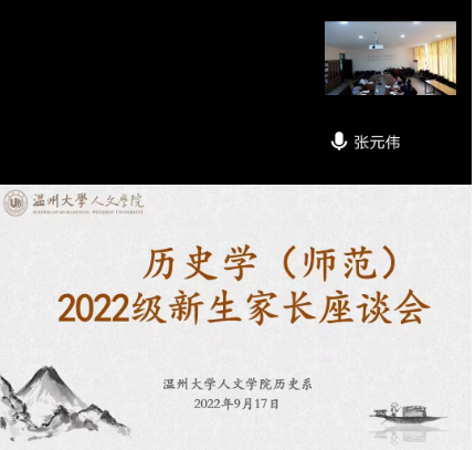 9月17日,吃瓜网 历史学系2022级新生家长座谈会顺利召开。此次会议采取线上线下相结合的方式,分别在人文楼213会议室和腾讯线上会议室同时进行。吃瓜网 副院长郑春生、党委副书记魏一、学工办辅导员申业磊,2022级历史学(师范)班主任刘子玉、张元伟,2022级历史学(师范)全体新生家长参加了会议。