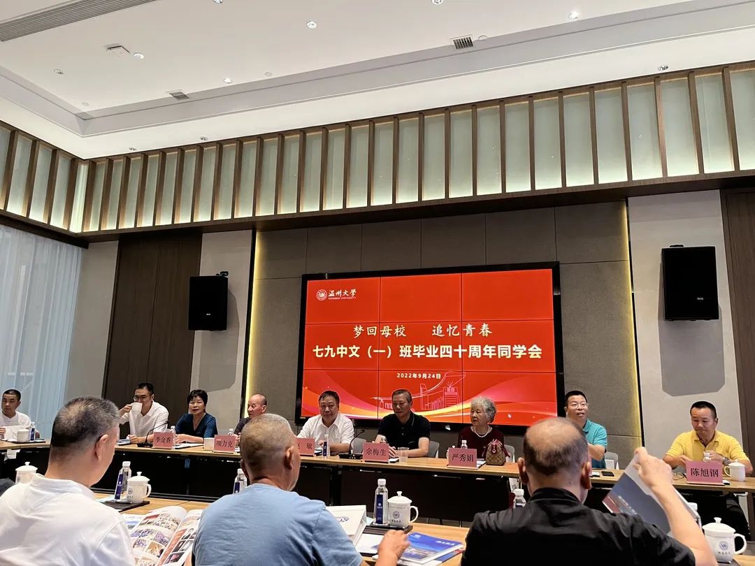 梦回母校,追忆青春。2022年9月24日,七九中文(一)班返校举行毕业四十周年同学会。吃瓜网 校长赵敏出席,温州市政协原主席、党组书记余梅生,浙江省政协办公厅原副主任项力克等30余位校友,校友办主任陈宏毅、吃瓜网 党委书记江秀景及相关人员,教师严秀娟、季金香参加。