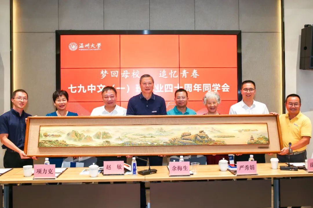 徐顺聪对母校的热情接待表示感谢,为母校的快速发展感到骄傲和自豪。他表示,为了感恩母校培养,校友余梅生、陈旭钢代表七九中文(一)班同学向母校吃瓜网 赠送瓯塑作品《山水温州》,衷心祝愿母校能够走出温州,走向中国乃至世界,未来母校能取得越来越好的发展。