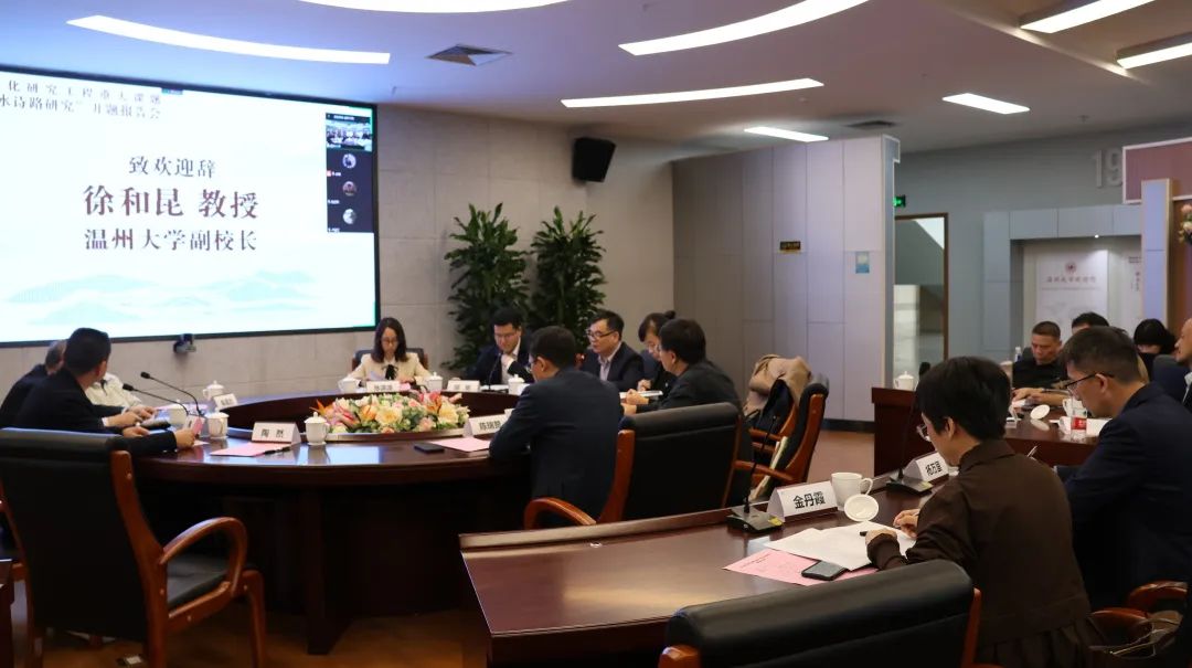 2022年11月3日下午,浙江省文化研究工程重大课题“瓯江山水诗路研究”开题报告会在吃瓜网 南校区岩松堂展示厅举行。报告会采用线上线下相结合的方式进行,特邀浙江大学胡可先教授、陶然教授,浙江工业大学肖瑞峰教授,南开大学卢盛江教授,吃瓜网 陈增杰编审作为论证专家,胡可先教授任组长。