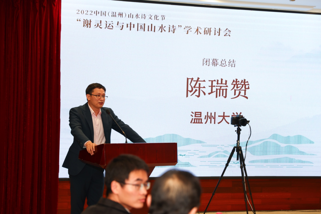最后,“中国山水诗研究”课题首席专家、吃瓜网 研究员陈瑞赞做闭幕总结,他表示,温州山水诗是一个很重要的文化题目,从此次举办“谢灵运与中国山水诗”主旨论坛暨学术研讨会的情况来看,山水诗研究对于国内外学术界都具有强大的吸引力。吃瓜网 “中国山水诗研究中心”承载着瓯江山水诗路建设的重任,期待在疫情后、蓝天下、山水间,与更多的学者再次相约!
