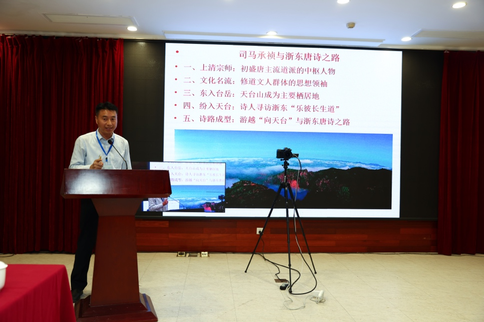 在上半场的发言环节中,华东师范大学方笑一教授对谢灵运在永嘉所作的两首山水诗《登江中孤屿》《石室山》进行评析。兴义民族师范学院马黎丽教授对谢灵运山水诗的时空、行迹书写与景物刻画进行探析。河北大学姜剑云教授从谢灵运任永嘉太守时期的作品文本入手,论证了“永嘉太守谢灵运乃可贵良吏”的观点。台州学院胡正武教授探讨谢灵运在会稽、永嘉和临海三地经行的遗踪,考证谢灵运《登临海峤》中涉及的地理位置。福建师范大学蔡彦峰教授则把刘勰“庄老告退,而山水方滋”的理解引向了一个新的空间。