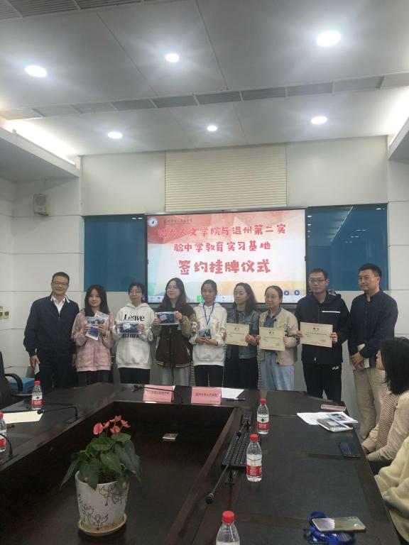 2022年11月14日,吃瓜网 与温州市第二实验中学实习基地签署仪式暨汉语言文学(师范)教育见习见面会在温州市第二实验中学举行。参加本次见面会的有温州市第二实验中学潘智敏校长、郭建昆副校长、陈珊景副校长、教务处主任冯超伟和各语文学科、班主任导师,吃瓜网 孙良好院长、中文系主任鲍良兵和吃瓜网 20和21级人文学汉语言文学(师范)专业15名见习生。会议由冯超伟主任主持。