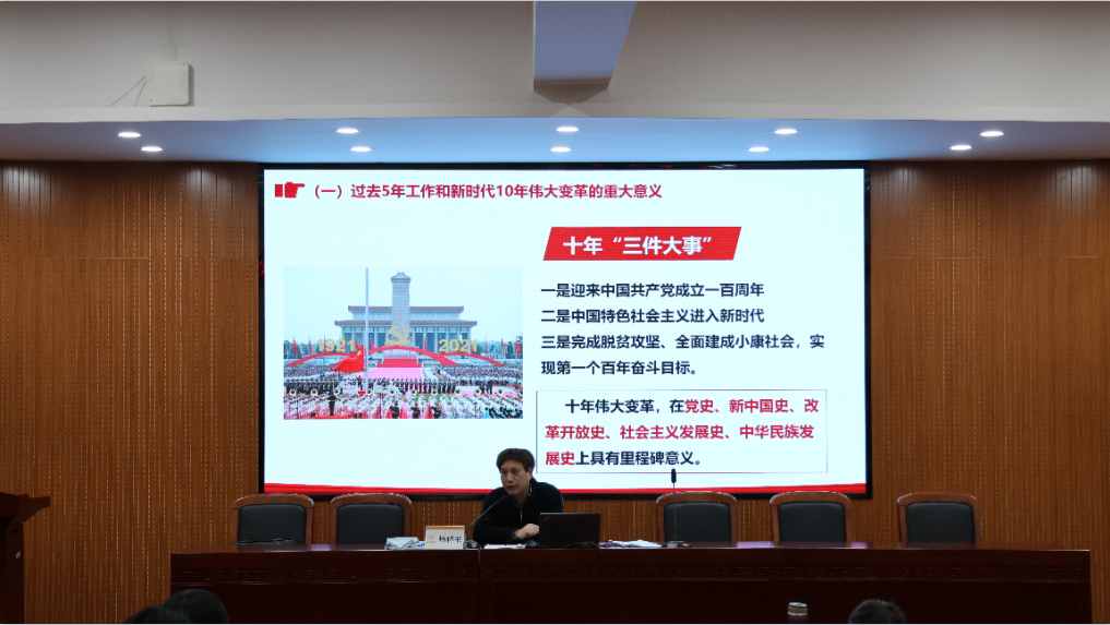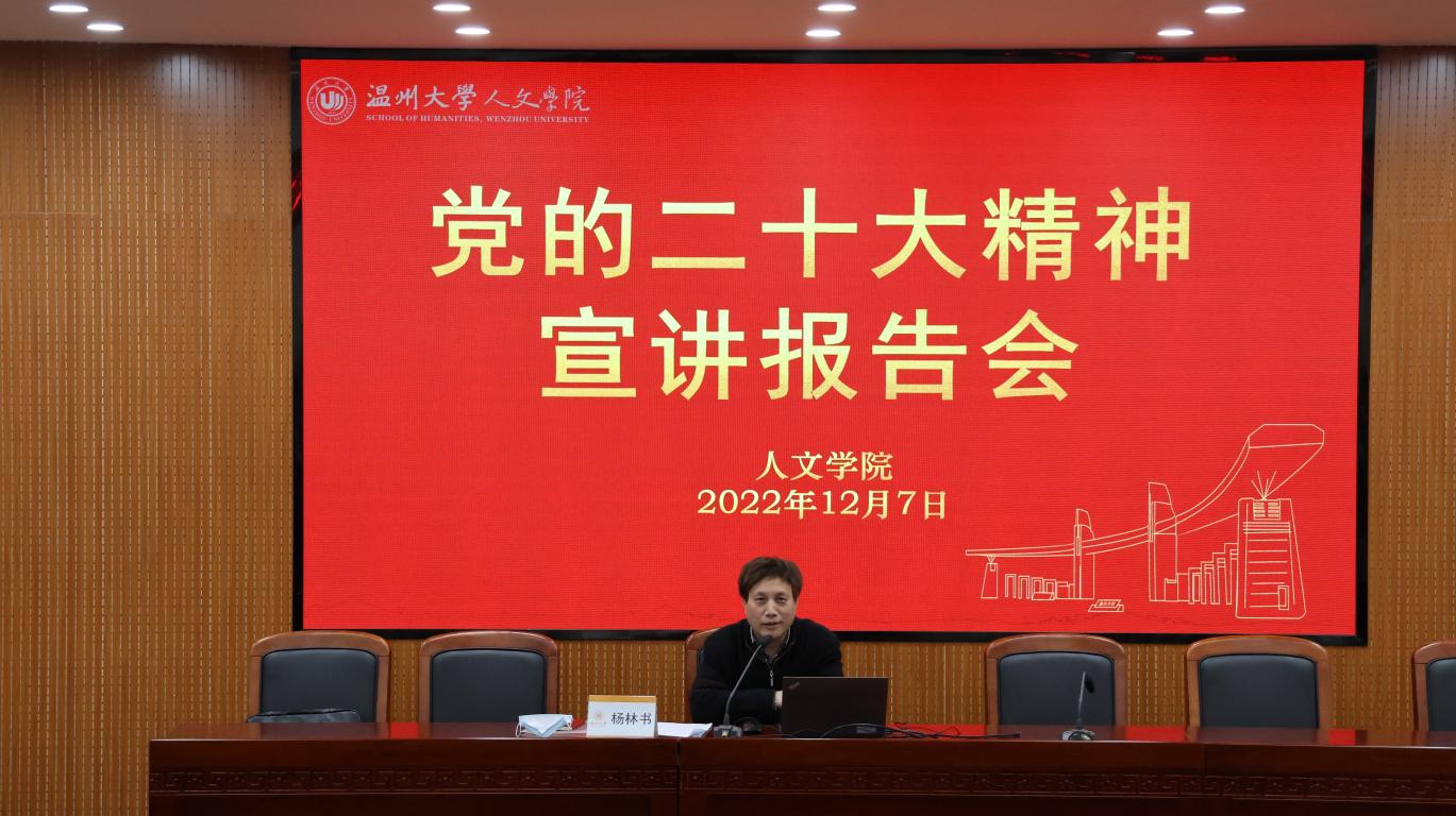 为深入学习贯彻党的二十大精神,12月7日下午,吃瓜网 召开党的二十大精神宣讲报告会。校党委委员、纪委书记杨林书为全院教职工和学生党员代表作党的二十大精神专题宣讲,院党委书记江秀景主持。