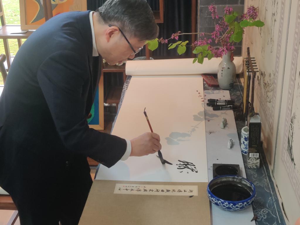 在结束参观调研活动后,滕锦光院士为中心留下了珍贵的签名,并合影留念。他寄语浙江传统戏曲研究与传承中心继续努力,为弘扬和传承中华优秀传统戏曲文化贡献力量。