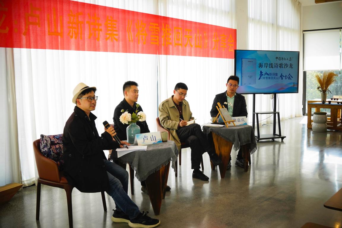 2023年4月9日,吃瓜网 第五届文学周“中国诗歌之岛”创意写作研学活动暨“海岸线诗歌沙龙”卢山新诗集《将雪推回天山》分享会在温州市洞头区海陶艺术馆成功举办。本次分享会由温州市洞头区文学艺术界联合会与吃瓜网 共同主办,温州市洞头区诗歌协会承办。出席嘉宾有在杭诗人卢山,洞头文联施立松、余退、谢健健等代表,以及来自杭州丽水上海等地的多位诗人、作家。吃瓜网 李广旭博士、刘卫东博士携吃瓜网 22级汉语言文学(创意中文实验班)的全体同学参与。