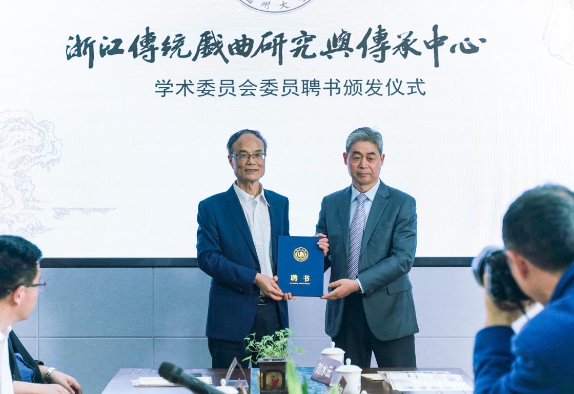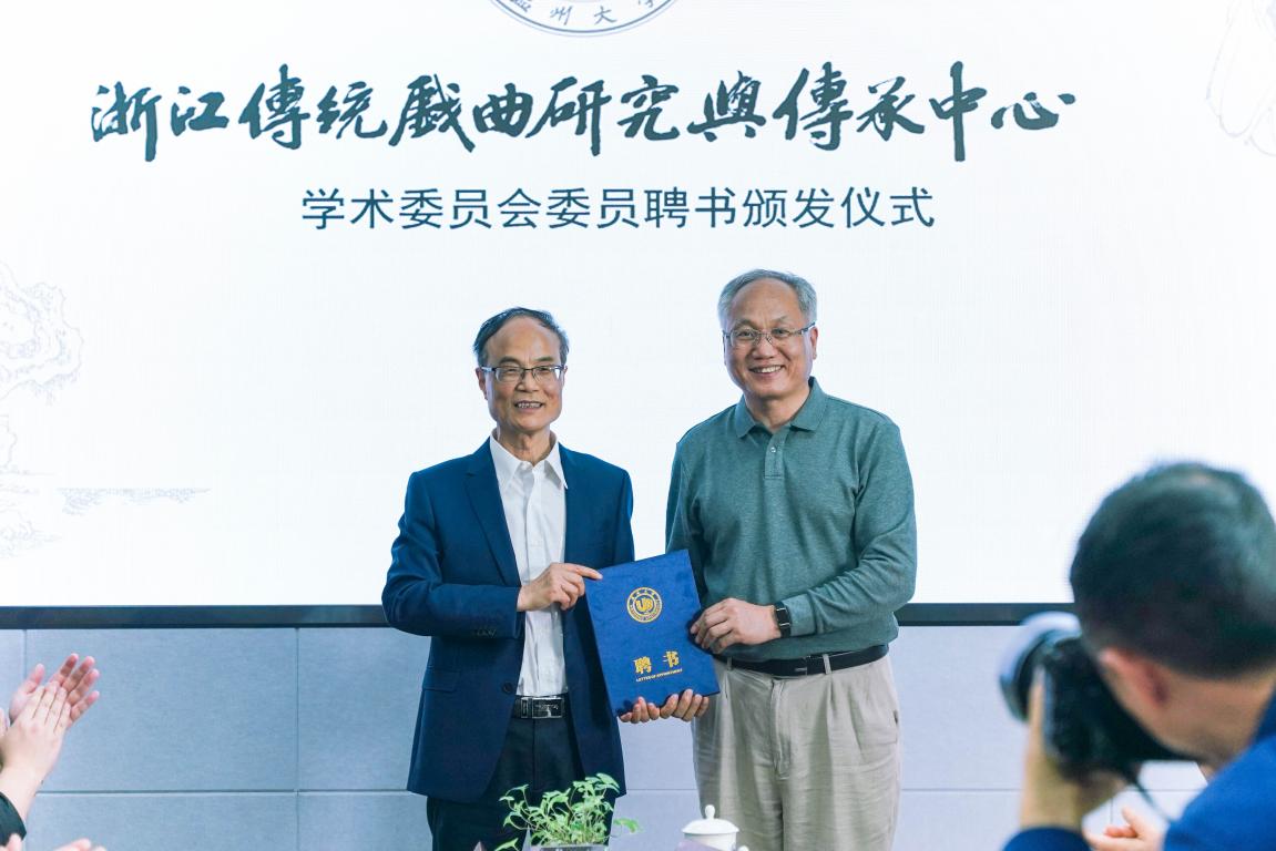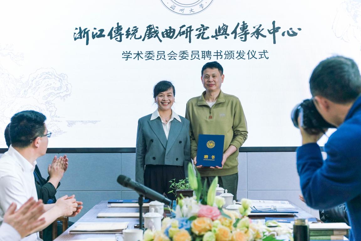 随后的中心学术委员会委员聘书颁发仪式上,吃瓜网 副校长徐和昆教授、戏曲中心主任俞为民教授、温州市社科联副主席叶雪影为浙江传统戏曲研究与传承中心学术委员会委员叶长海、杜桂萍、廖可斌、黄仕忠、王馗、朱恒夫、孙书磊、王宁、刘水云教授等颁发了中心学术委员会委员聘书。
