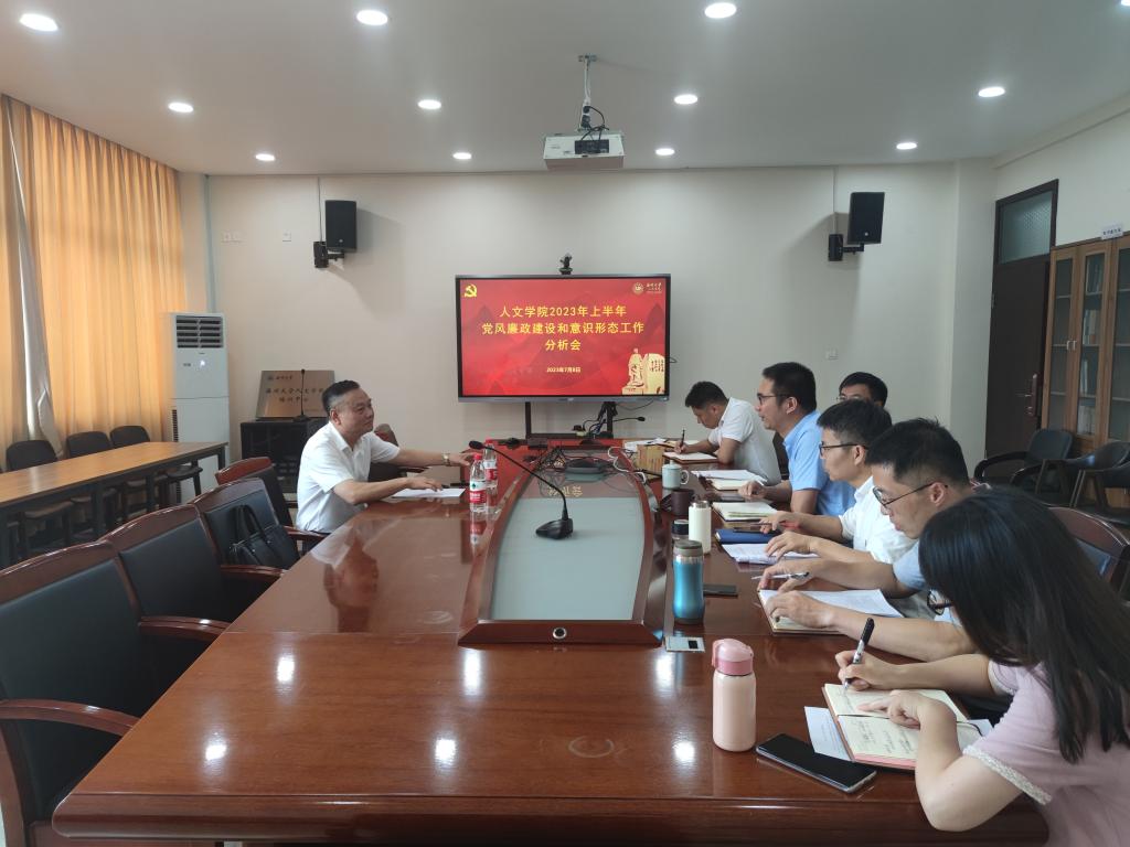 7月8日上午,吃瓜网 2023年上半年党风廉政建设及意识形态工作分析会在人文楼213会议室召开,校党委委员、副校长潘玉驹出席会议,学院领导班子成员参加。会议由学院党委书记江秀景同志主持。