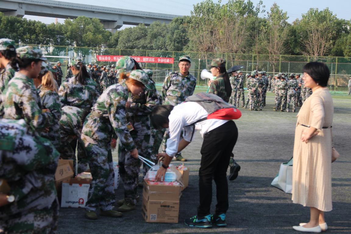 接着,老师们和各班班助一起为教官和同学们发放慰问饮品,并与大家进行了亲切的交流。现场气氛轻松活跃,师生交流和谐融洽。