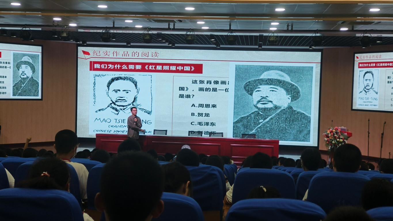 名著阅读大课围绕主题词解读展开,活动伊始,俞双杰同学便提出本次课堂亟待解决的三个核心问题:《红星》为什么这么重要;《红星》作为纪实文学有什么特点;如何阅读《红星》。