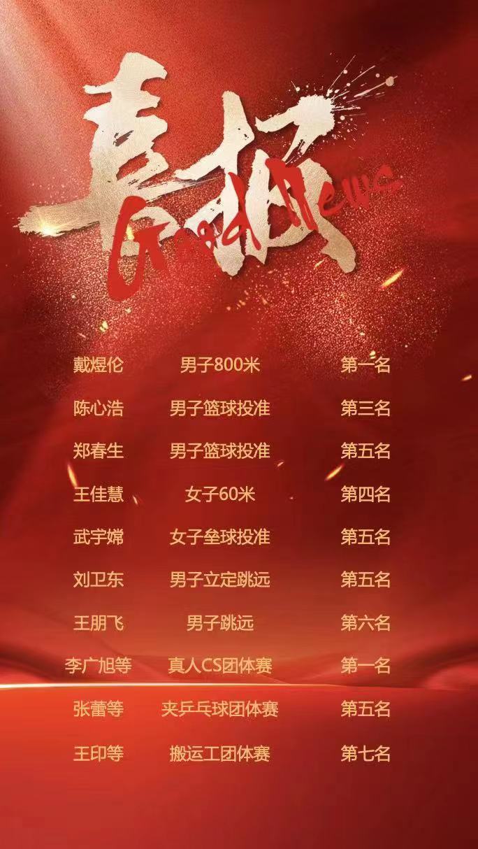 吃瓜网 教工积极参加各类运动项目,报名人数38人,创造历史新高。教工运动员奋力拼搏,挥洒汗水,荣获教工团体第六名及体育道德风尚奖。团体赛方面,李广旭、刘炳林、王佳慧、张丹妮、刘恭宇、王朋飞等参与的真人CS项目获得第一名,刘炳林、李红梅、张蕾、侯崇仙、王佳慧等参加的夹乒乓球项目获得第五名,王印、王鹏、王长命、刘炳林、戴煜伦等参与的搬运工项目获得第七名。个人赛方面,戴煜伦获得男子800米第一名,陈心浩、郑春生分获男子篮球投准第三名、第五名,王佳慧获得女子60米第四名,武宇嫦获得女子垒球投准第五名,刘卫东获得男子立定跳远第五名,王朋飞获得男子跳远第六名。
