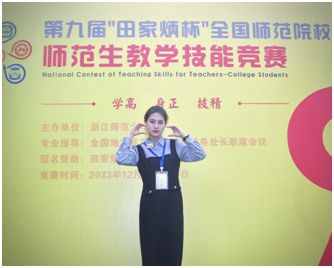 2023年12月29日至31日,在浙江师范大学举行的第九届“田家炳杯”全国师范院校师范生教学技能竞赛决赛中,我校参赛选手获一等奖4项,一等奖数全国排名第六,20级历史学(师范)阮雨欣同学和20级汉语言文学(师范)臧航逸同学名列其中,分别获高中历史学组一等奖、高中汉语言文学组一等奖。
