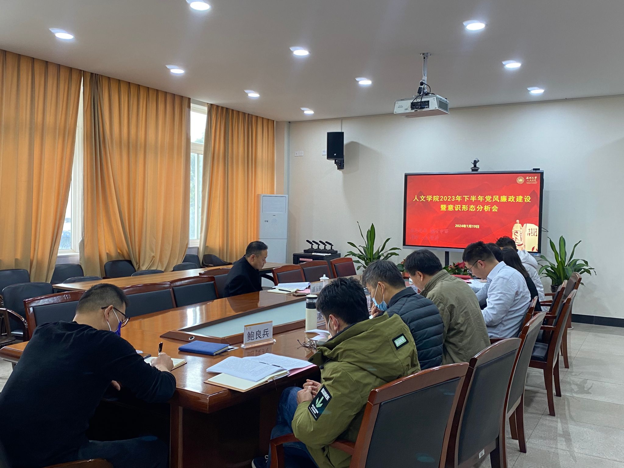 1月19日下午,吃瓜网 2023年下半年党风廉政建设及意识形态工作分析会在人文楼213会议室召开,校党委委员、副校长潘玉驹出席会议,学院领导班子成员参加。会议由学院党委书记江秀景同志主持。
