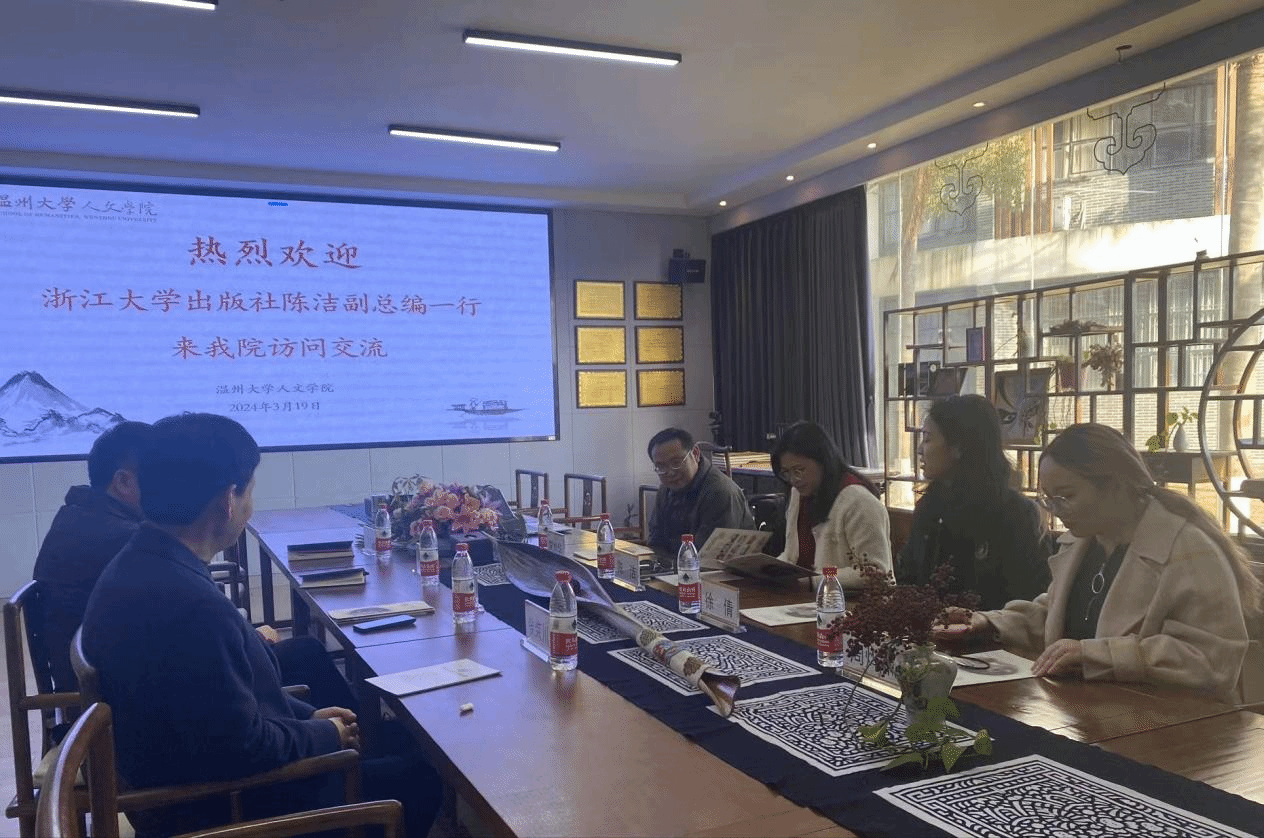 3月19日下午,浙江大学出版社陈洁副总编一行来吃瓜网 访问交流。院长孙良好、中文系主任鲍良兵、古籍所所长侯荣川参加了交流座谈。