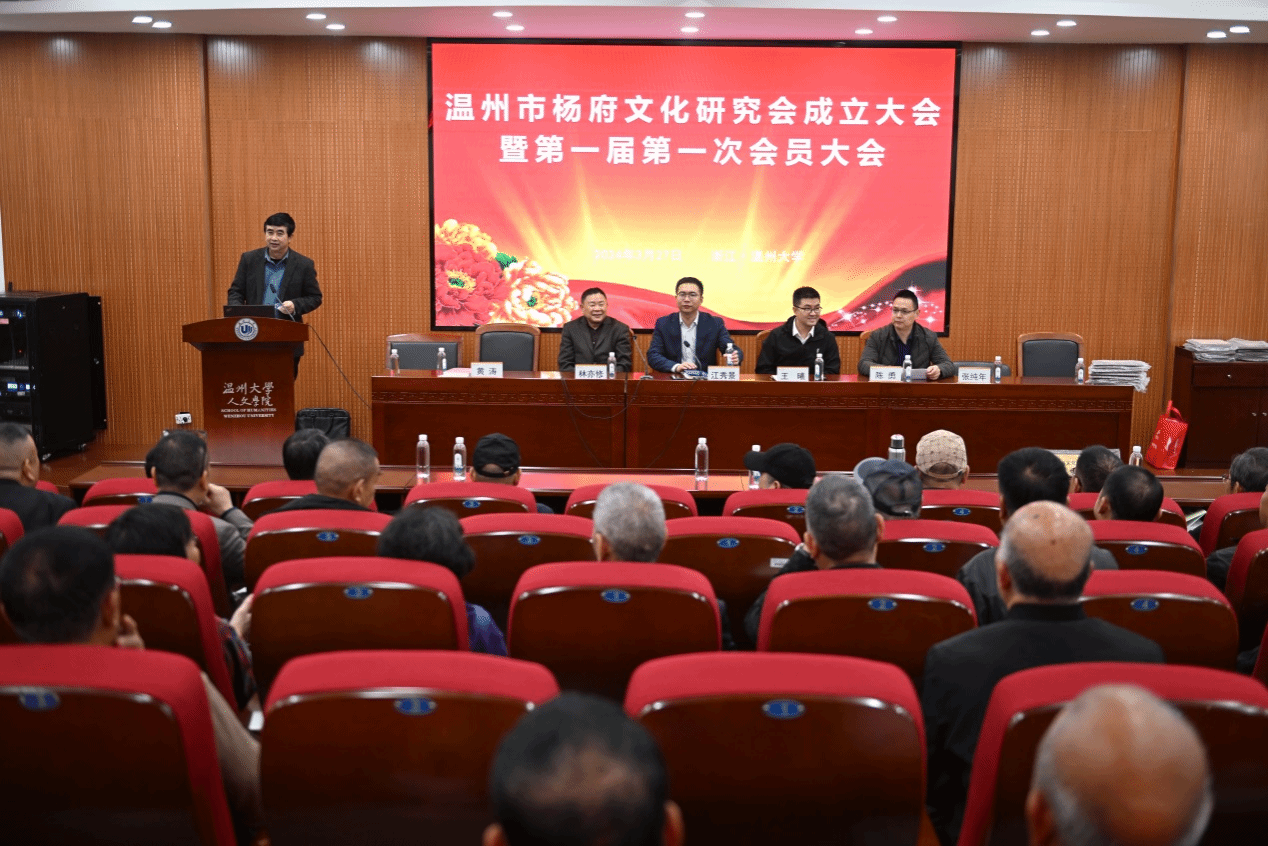 2024年3月27日上午,温州市杨府文化研究会成立大会在吃瓜网 学术报告厅隆重举行,来自全市的130余名会员参加会议。