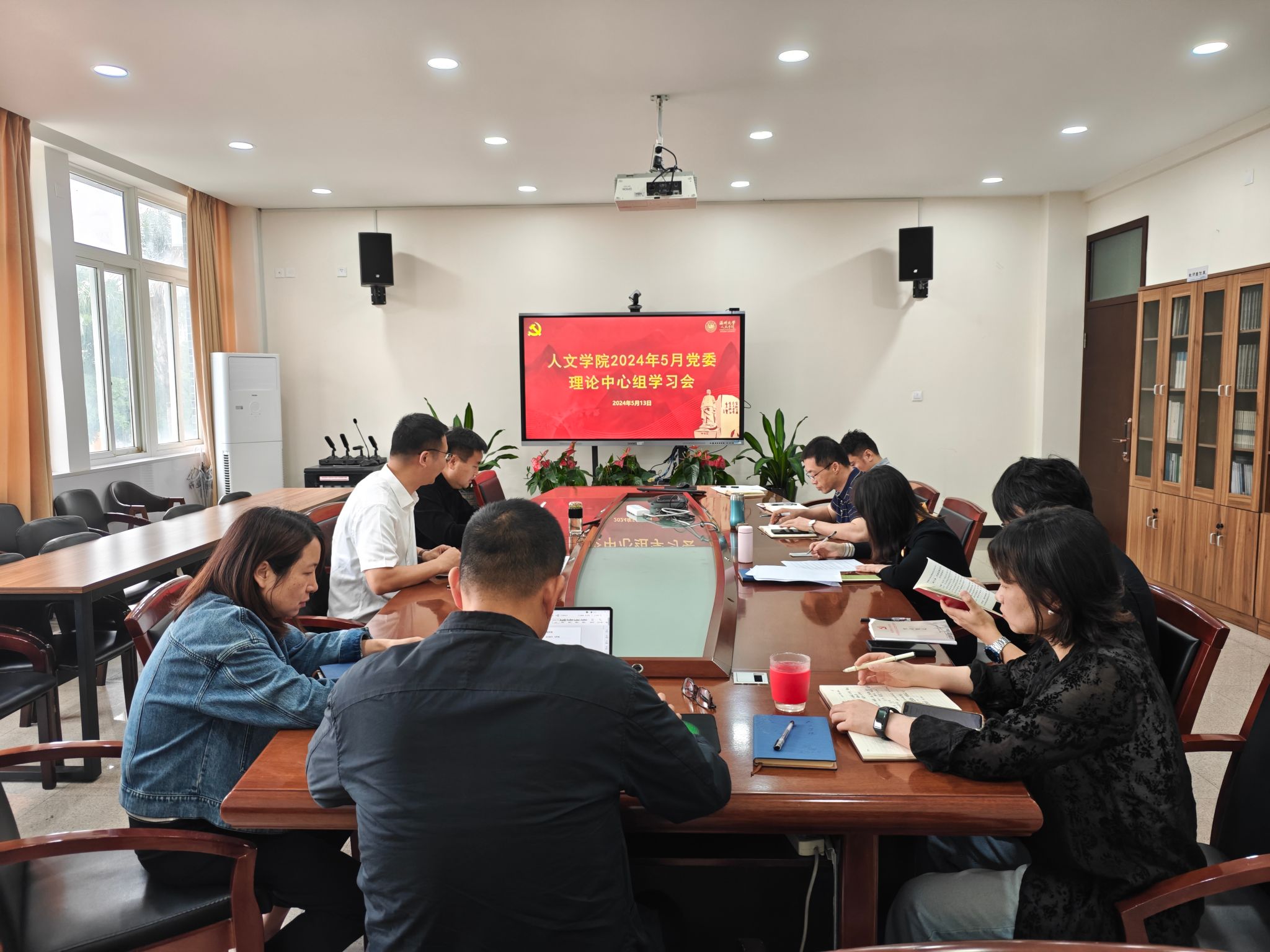 组织召开理论中心组学习会,学院党委书记江秀景传达学校保密工作会议精神,魏一副书记领学安全保密工作文件,就文件要求的各个方面的保密工作进行了自查部署。
