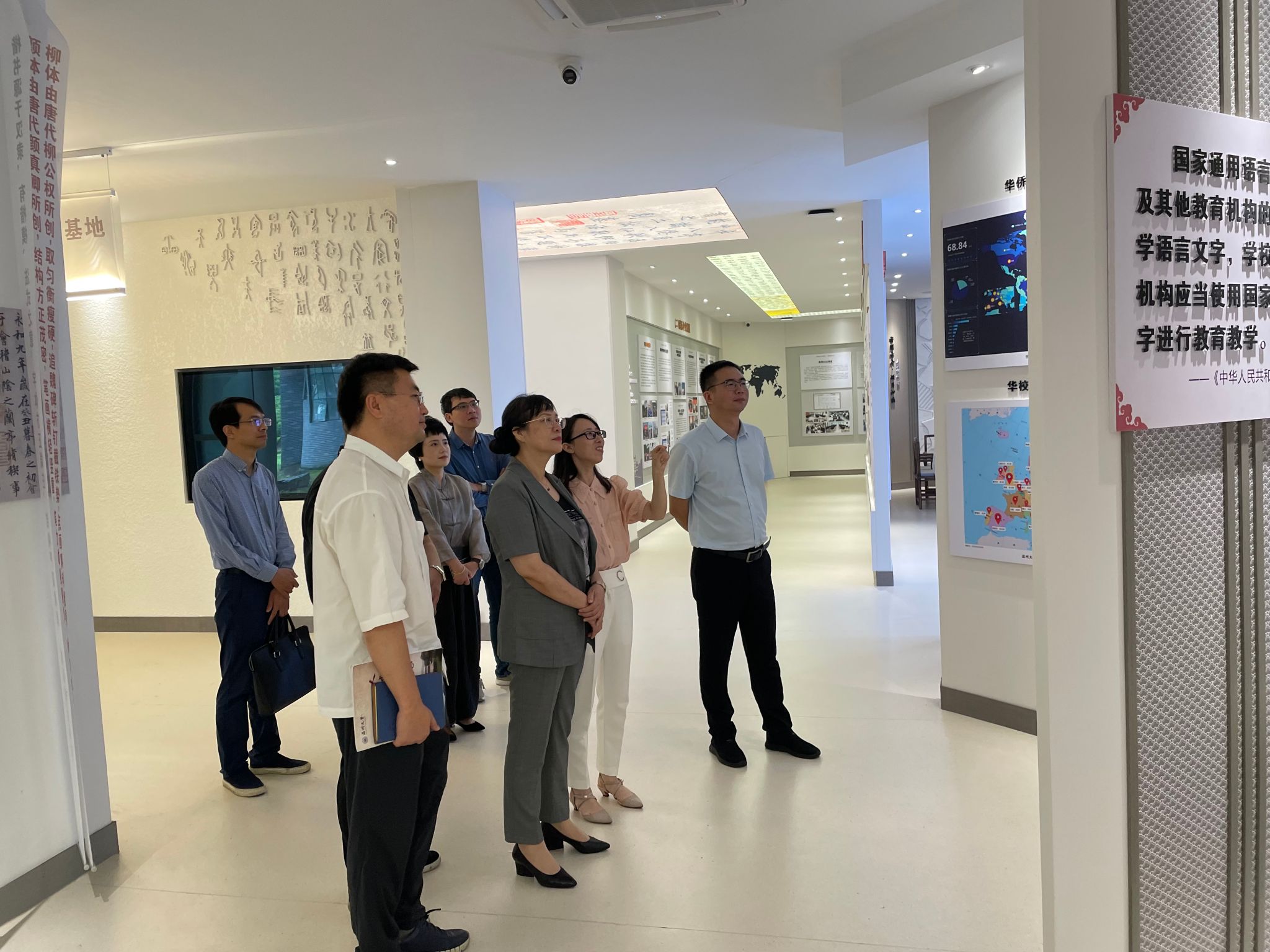 最后,赵降英副书记和夏春雨部长在学院领导班子的陪同下参观了语言文字基地。