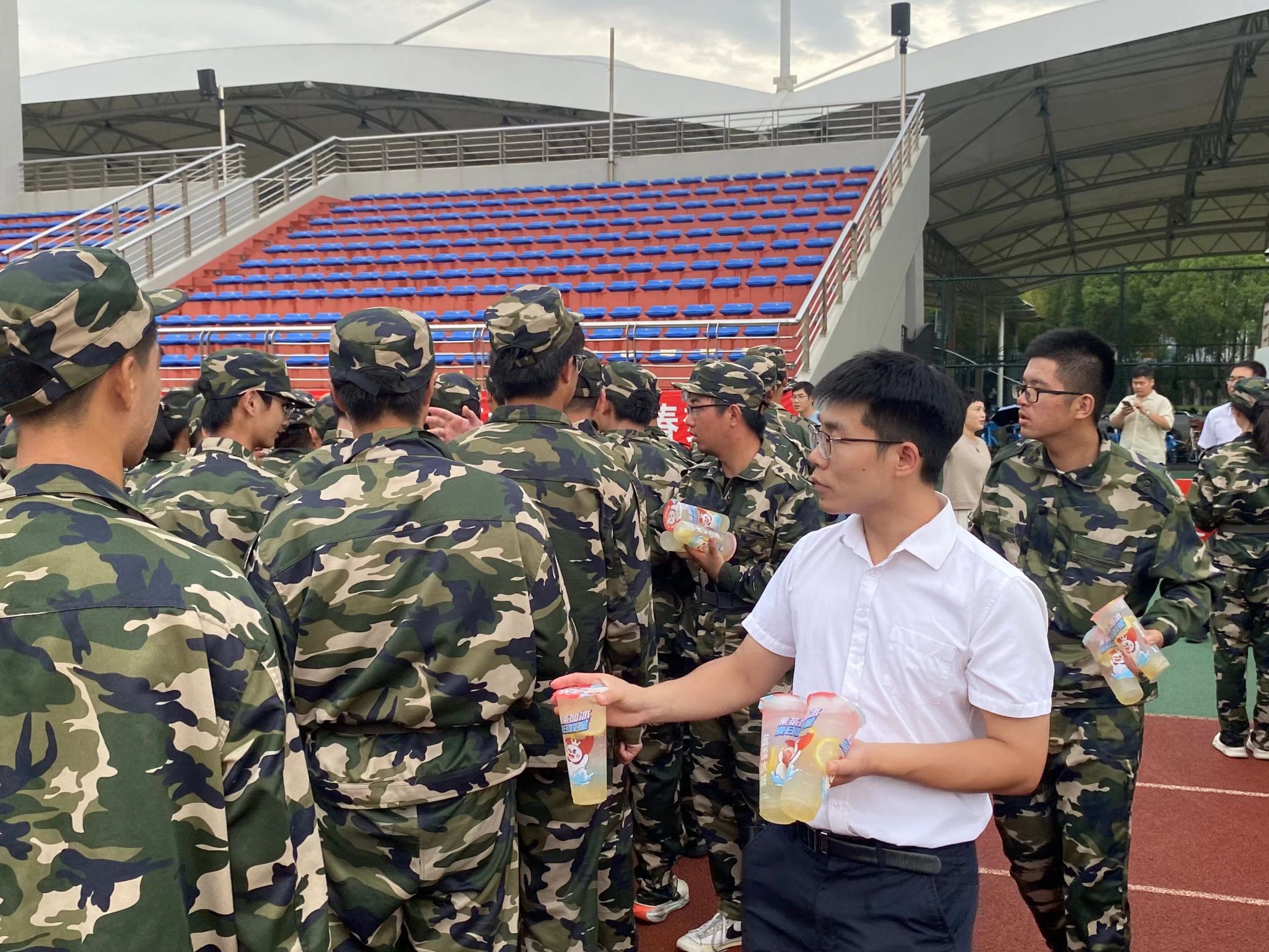随后,江秀景老师与各位老师一起为军训新生们送上清凉饮料,同学们备受鼓舞、士气高涨,并报以热烈的掌声。大家纷纷表示,虽然军训很辛苦,但他们也收获颇丰,学会了坚持、忍耐、团结,相信人文学子在今后的四年定会不负学院及老师们的厚望,努力展现青春风采,奋力书写青春华章。