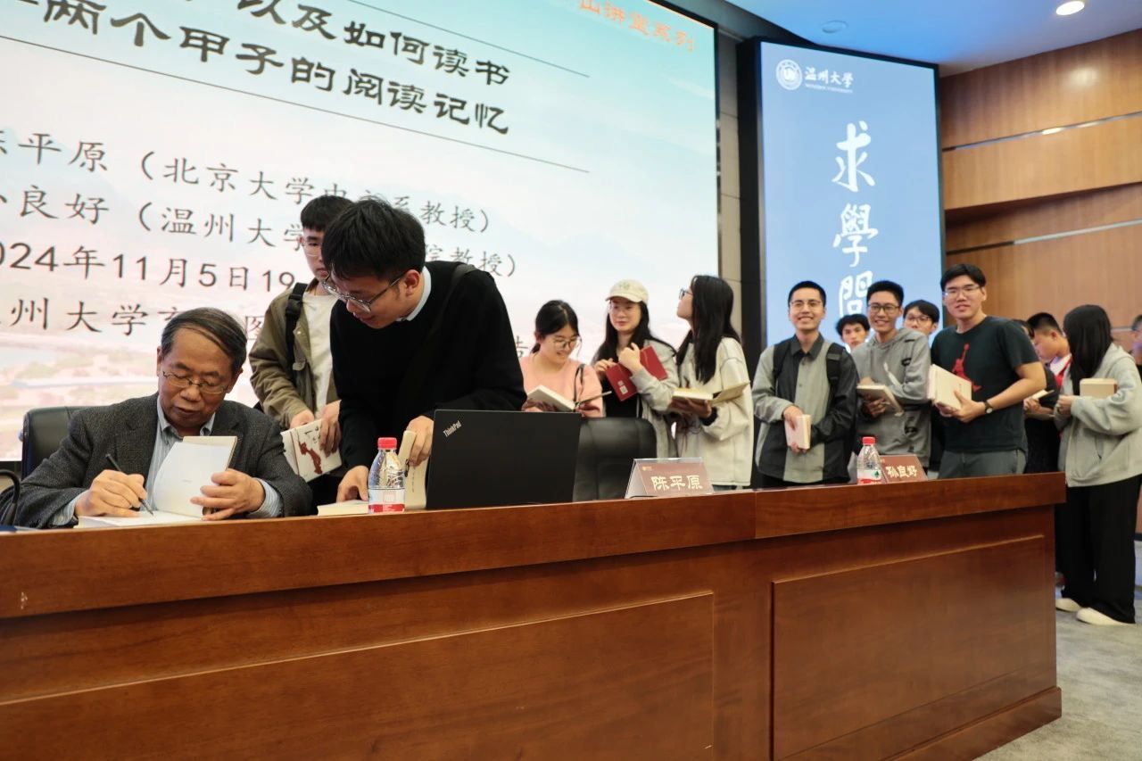 在交流环节,听众积极参与。其中,温大的一位老师分享了自己的听讲感受,他认为陈老师把阅读史作为新文化史研究的切入点,实际上是把阅读史作为新文化史研究与中国文学研究的结合,从而大大拓宽了文学研究的边界。陈平原教授在回答学生关于“给现在的高中生或初中生推荐一本书,您会推荐哪本?”时,谈到需要给不同学养趣味的对象提供不同的选择,如果让他推荐,他会推荐几套书作为选择,因为有人喜欢言情,有人喜欢科幻,有人喜欢诗歌,有人对考古有兴趣,有人对文物情有独钟,不同的人有不同的癖好。