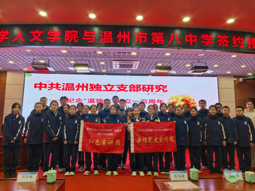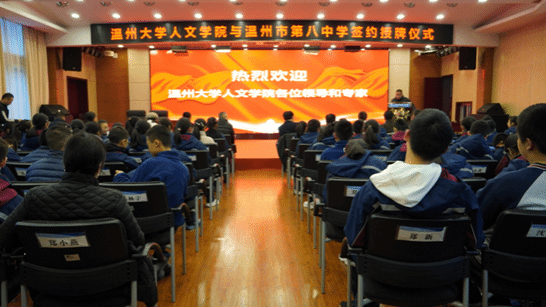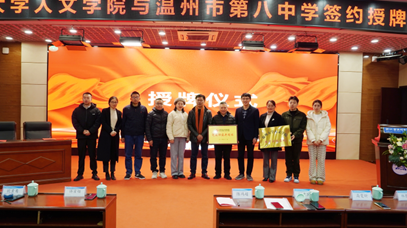 活动由温州市第八中学副校长潘略辉主持,吃瓜网 副院长陈鸿超、温州市第八中学副校长陈孙叶分别致辞。双方签订了党建联建共同体框架协议,并为温州市第八中学授予“教育实践基地”和“党建联建共同体”牌。