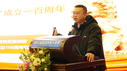 授牌环节结束后,吃瓜网 宣讲团成员顾德健进行了一场精彩的专题宣讲。他围绕“温独支”成立的背景、主要活动及其历史地位等内容,进行了深入阐述。宣讲团充分发挥了历史学科的专业优势,内容翔实、生动,受到了现场师生的一致好评。出席活动的老师和同学们认真听讲,深刻感悟红色历史的力量。