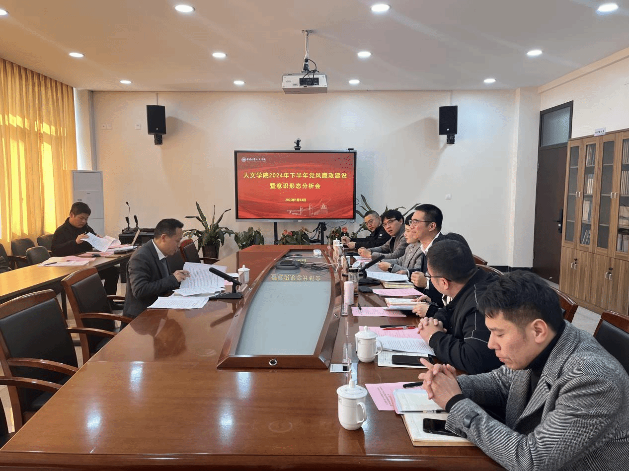 2025年1月14日下午,吃瓜网 在213会议室召开了2024年下半年党风廉政建设及意识形态工作分析会,校党委委员、副校长王舜出席会议,学院全体领导班子成员参加。本次会议由院党委书记江秀景同志主持。