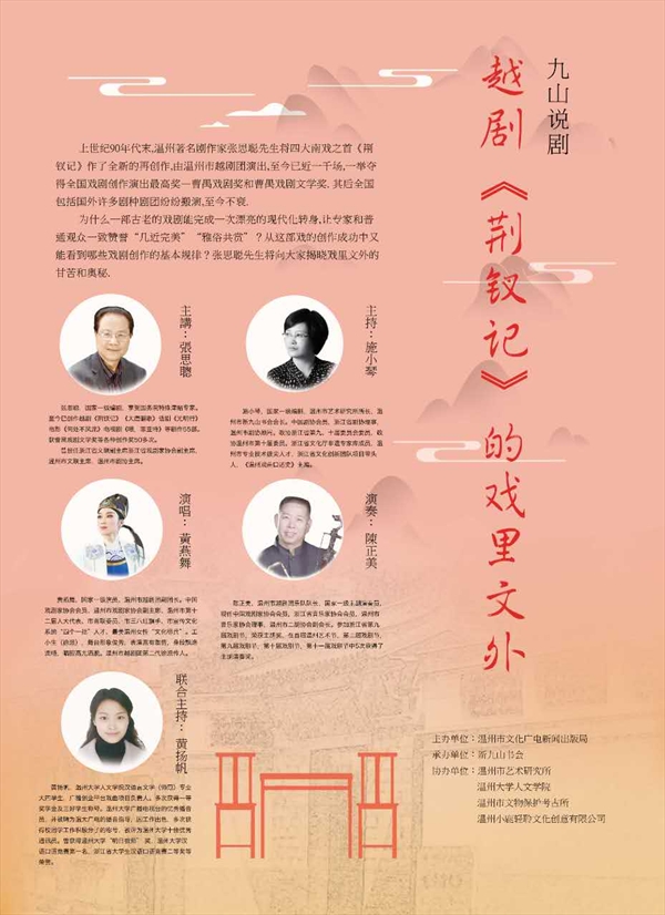 讲座开始时,柳升高局长和朱启鑫书记与台下听众进行了亲切交流,共同传达出挖掘、弘扬、传承南戏文化的强烈愿望,以学习一种文化,研究一个项目,培养一批新人为努力方向。接着,张思聪老师细致生动地和我们分享起了《荆钗记》的创作故事: