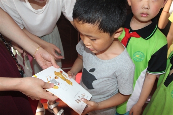 在捐赠给小芙社区的百余本书籍的基础上,另外专门购置二十本儿童读物,作为孩子们的节日礼物。目的是为地处相对偏远、人均图书达标率低的农村学校提供丰富优质的学习资源,搭建更广阔的阅读平台,让孩子在快乐中成长。其中包括曹文轩的《草房子》、《山羊不吃天堂草》等。当一本本书籍送到小朋友的手里时,从他们的脸上我们看到了对知识的渴望和新鲜事物的好奇。邢芳芳老师还在捐赠仪式上向同学们表达了节日的问候,并鼓励同学们从小树立自己的梦想,把自己的小梦想和“中国梦”紧密联系在一起,长大后为祖国、为人民争光。拍完集体照后,志愿者与老师再次祝孩子们节日快乐并启程返回学校。