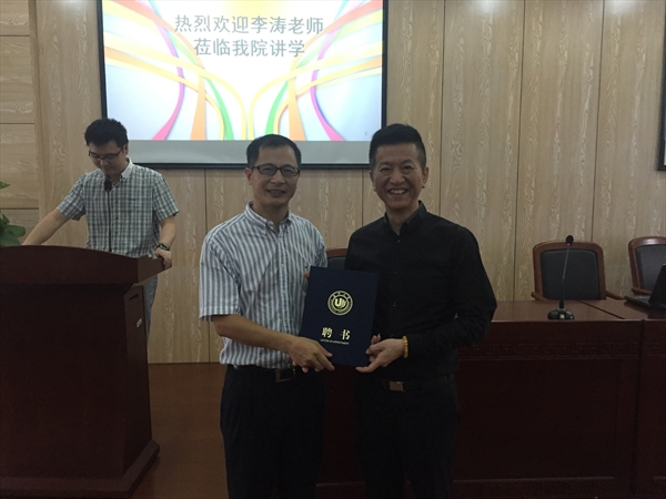 讲座前,校党委委员、组织部部长方益权教授向李涛老师颁发了兼职教授的聘书。