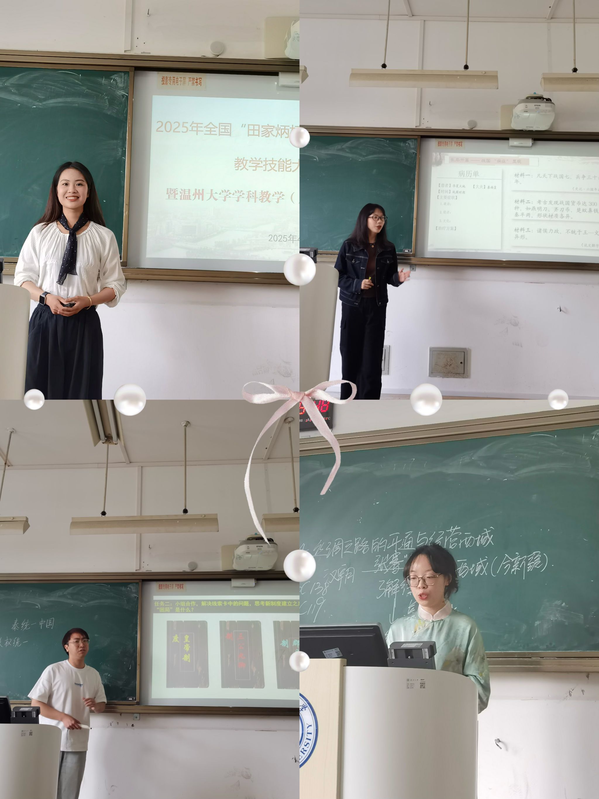 为进一步提升研究生的教学能力、强化课堂教学基本功,提升研究生的实践能力和创新能力,并为即将举行的“田家炳杯”全国学科教学(历史)专业研究生教学技能大赛选拔优秀选手,吃瓜网 学科教学(历史)专业研究生教学技能竞赛于2025年4月18日在人文楼206教室成功举办。