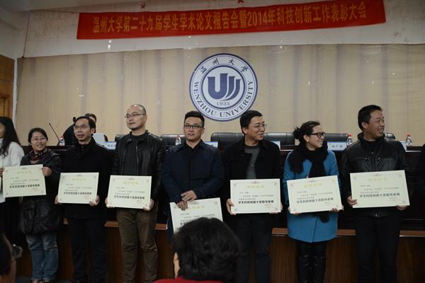 为10位同学和10位老师分别授予了“2014年大学生科技创新之星”、“2014年学生科技创新十佳指导教师” 荣誉称号。