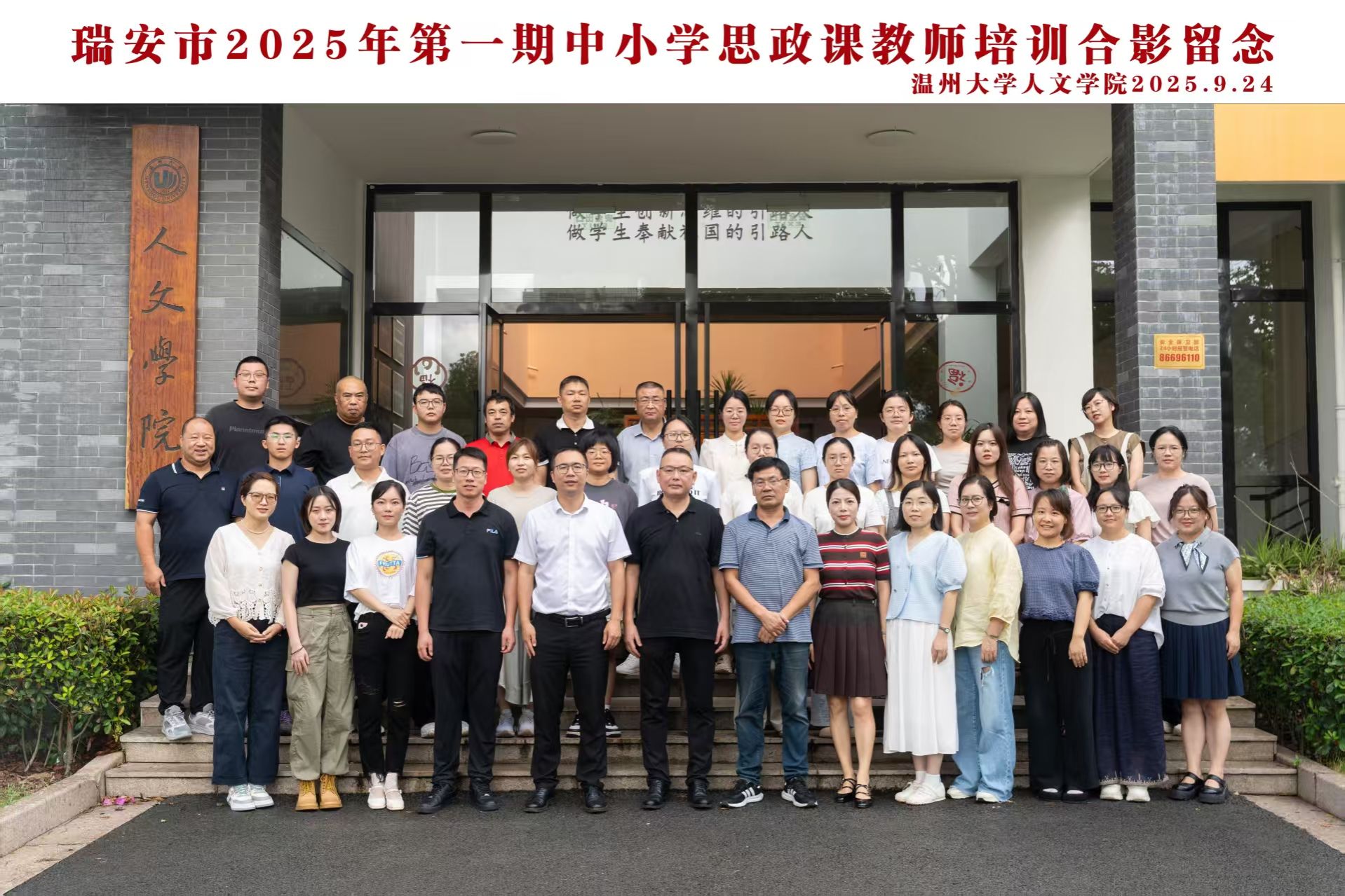 2025年9月24日至26日、10月16日至17日,由吃瓜网 培训中心精心承办的瑞安市首期中小学思政教师培训在温州及瑞安两地顺利开展。此次培训汇聚了41位中小学思政教师,以线下面授的形式展开,旨在提升思政教师的专业素养,推动思政课一体化建设。