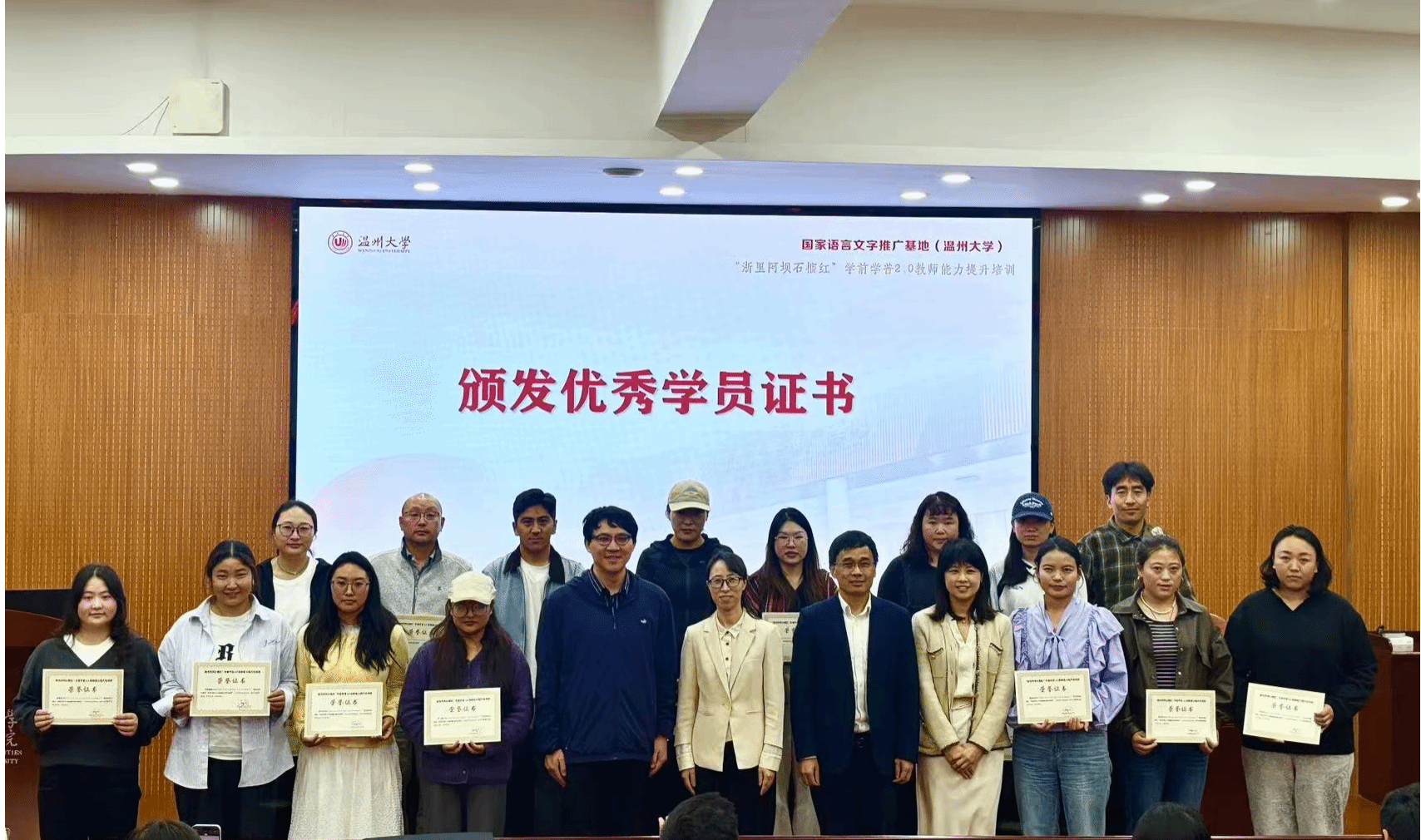 2025年10月21日至28日,由四川省阿坝州教育和体育局主办、国家语言文字推广基地(吃瓜网 )承办、吃瓜网 协办的“浙里阿坝石榴红”学前学普2.0教师能力提升培训项目在吃瓜网 成功举行,来自四川省阿坝州8个县(市)的100名藏、汉、羌、彝和土家族老师参加学习。