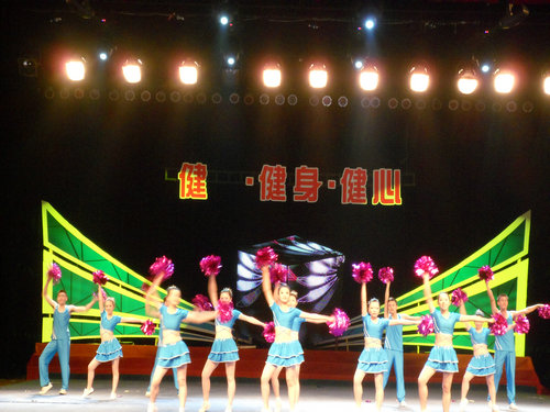 接下来比赛正式开始了,本次大赛共有九支单人操,十五支团体操参与比赛。
