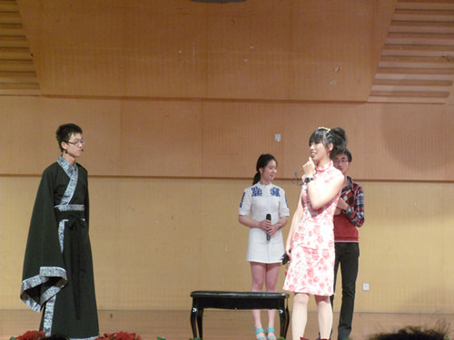 为了进行计分统计和评奖,请上了嘉宾表演,这次的嘉宾表演是歌曲串烧,由院十佳魏婷和戚巧巧进行表演。动人的嗓音,从千年以前传到了今天繁星下的夜。悠悠扬扬,丝丝缕缕,牵扯着几千年的情节。