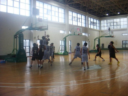 上半场的比赛,机电学院的同学攻势猛烈,以两分罚球率先得分拉开了比赛的序幕。接着14号罚球未进,15号抢断,又以两罚一中再添1分。热身之后,进球连连,第一节以16分的得分完美收官,而人文仅靠31号董建杰的两个中短距离投篮拿了4分。