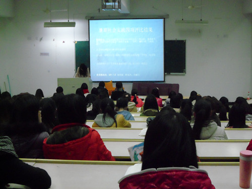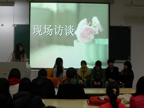 大会在介绍了10级丰硕的活动成果之后,宣读了暑期社会实践省市级评比结果并为获奖团体颁奖。而在接下来的现场访谈环节中,10级的同学们讲述了自己一路走过的经历与体会,其中的酸甜苦辣更是给11级的同学们留下了深刻的印象。