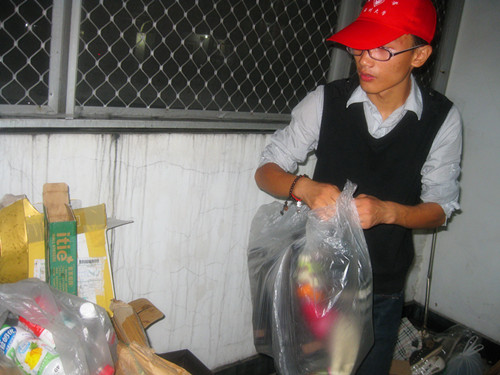 人文思源青年志愿者协会在温大C区学生宿舍继续进行废旧物品回收的常规活动。同学们都很热情地配合志愿者们的活动。