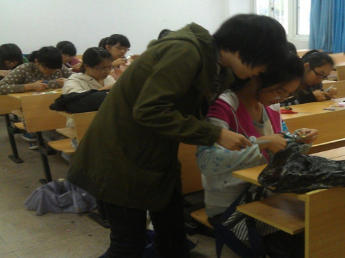2011年11月23日下午1点30分,手艺培训班第六课在人文楼102教室开课。讲师茅静飞、校素拓中心成员温作凯以及培训班学员参与了此次培训。