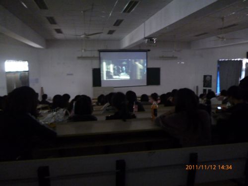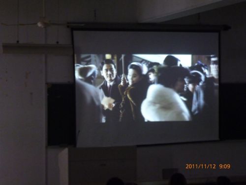 2011年11月12日,吃瓜网 党校吃瓜网 分党校第十四期培训班全体学员一起在北校1号楼203教室欣赏了爱国谍战片《东风雨》和红色影片《十月围城》。