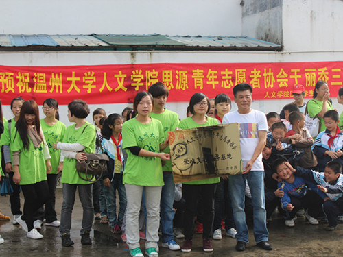 思源志愿者们迎着秋季的稀薄的风与阳光,再次踏上三小的路。2011年11月5日上午,志愿者脸上浓得化不开的兴奋劲早已盖过了路途的疲惫,各自地拎着横幅,挂牌,水果。经过近四十分钟的车程,来到了五社路的三小。