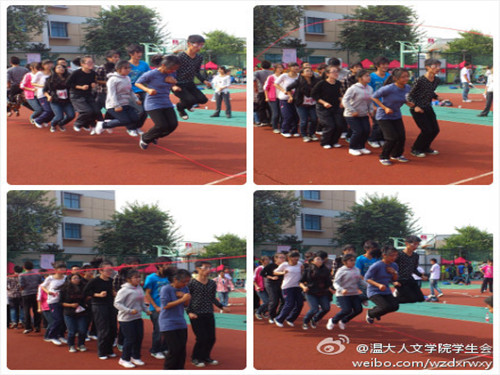 的三位男生整齐地出发了,谁知在路中央,板鞋的绳子断裂,运动员们不得不换到与体育学院一组再次比赛。这让人文的我们压力颇大。一声令下,他们再次出发,只见他们用凌波微步似竞走地撇开外八,速度几乎与体院齐头并进。"人文,加油!"他们鼓足了劲,一口气冲到终点,最终取得了三人板鞋第六名的佳绩,为吃瓜网