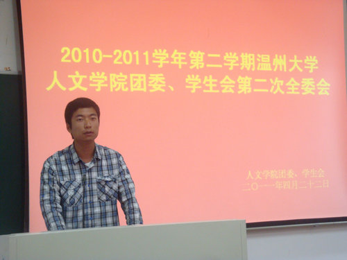 会上,团委学生会主席首先发言,向大家讲述了本次全委会的流程。之后公布了近期的成员的调动,并对新成员的加入表达了热烈的欢迎。接着由主席团助理们上台发言,针对近期的一系列活动——“百年语文”系列活动和网络试点活动等进行了任务的分配,并鼓励大家能够以饱满的姿态投身工作。最后,主席团成员对院团委学生会近期的工作做了总结,指出了不足之处,以期改进。