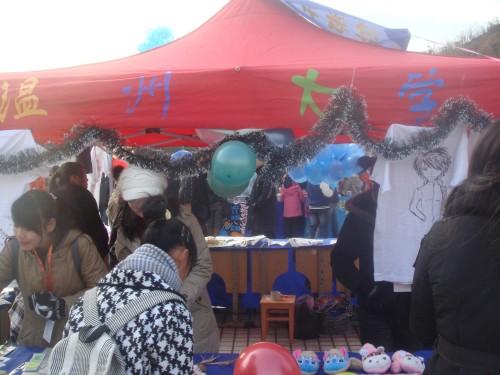 进驻的场地是"梦想、创意一条街",跳蚤协会的成员们充分发挥自身优势,带来了大量出自于学生之手的商品,充满着属于温大学子的创意和思想。有野逸书画协会的书法作品,飘逸俊秀;有美术学院的油画作品,栩栩如生;有建工学院的火材模型,精巧细致;有手工协会的石画纸花,隽秀灵巧......很快,这些别具特色的商品吸引了不少顾客的眼球,再加上成员们卖力热情的宣传,许多商品很快被销售一空。活动一直持续到11:00。活动最后,跳蚤协会凭借不俗的成绩为我校荣获了"爱心市场小旺铺"和"最佳组织奖"两个奖项。