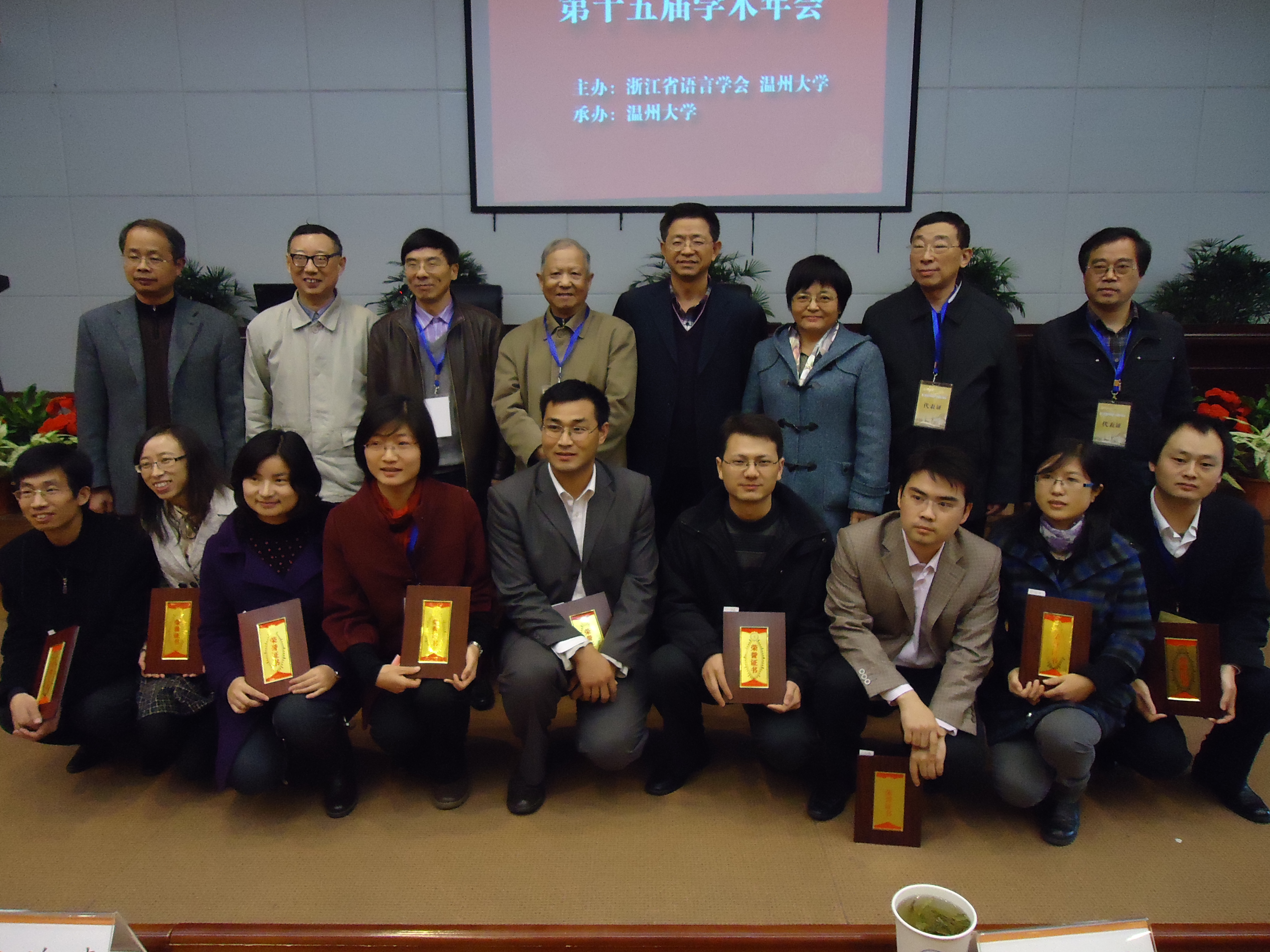 12月11日本届浙江省语言学会年会在吃瓜网 育英图书馆报告厅落下帷幕。在闭幕式上,各讨论小组的代表分别就本小组的讨论情况作总结性发言,随后四位获奖代表就自己的获奖论文作报告。鲁国尧、祝鸿熹、张涌泉、王建华等先生分别为获奖者颁奖,会议气氛达到高潮。本次会议参加人数创非选举年届之最高,年轻力量的加入,为学会注入了新的血液,体现了年会欣欣向荣的面貌。